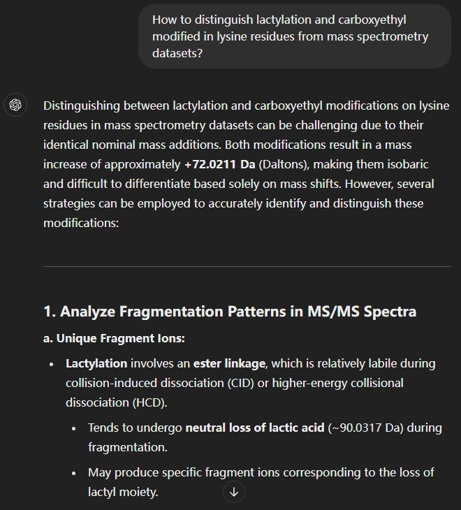 我们还咨询了来自清华,在读生物学的信博士,他的问题是: “如何从质谱数据集中区分赖氨酸残基的乳酰化和羧乙基修饰?”
