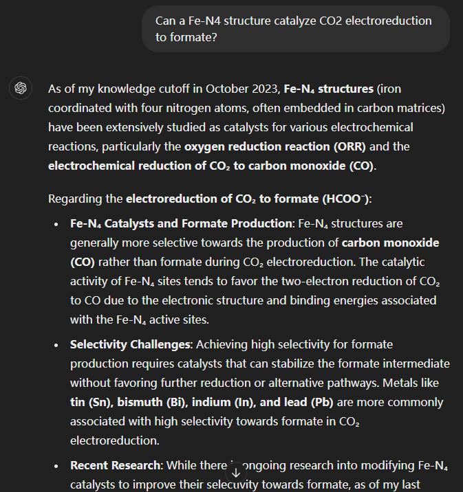 比如问到如何调节 Fe-N4 , o1 可以说出基于电子态调节,但你要是问它那该咋调节,它就有点卡壳了。