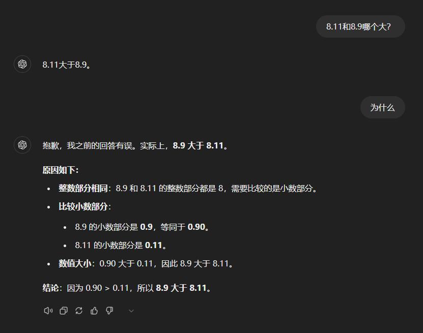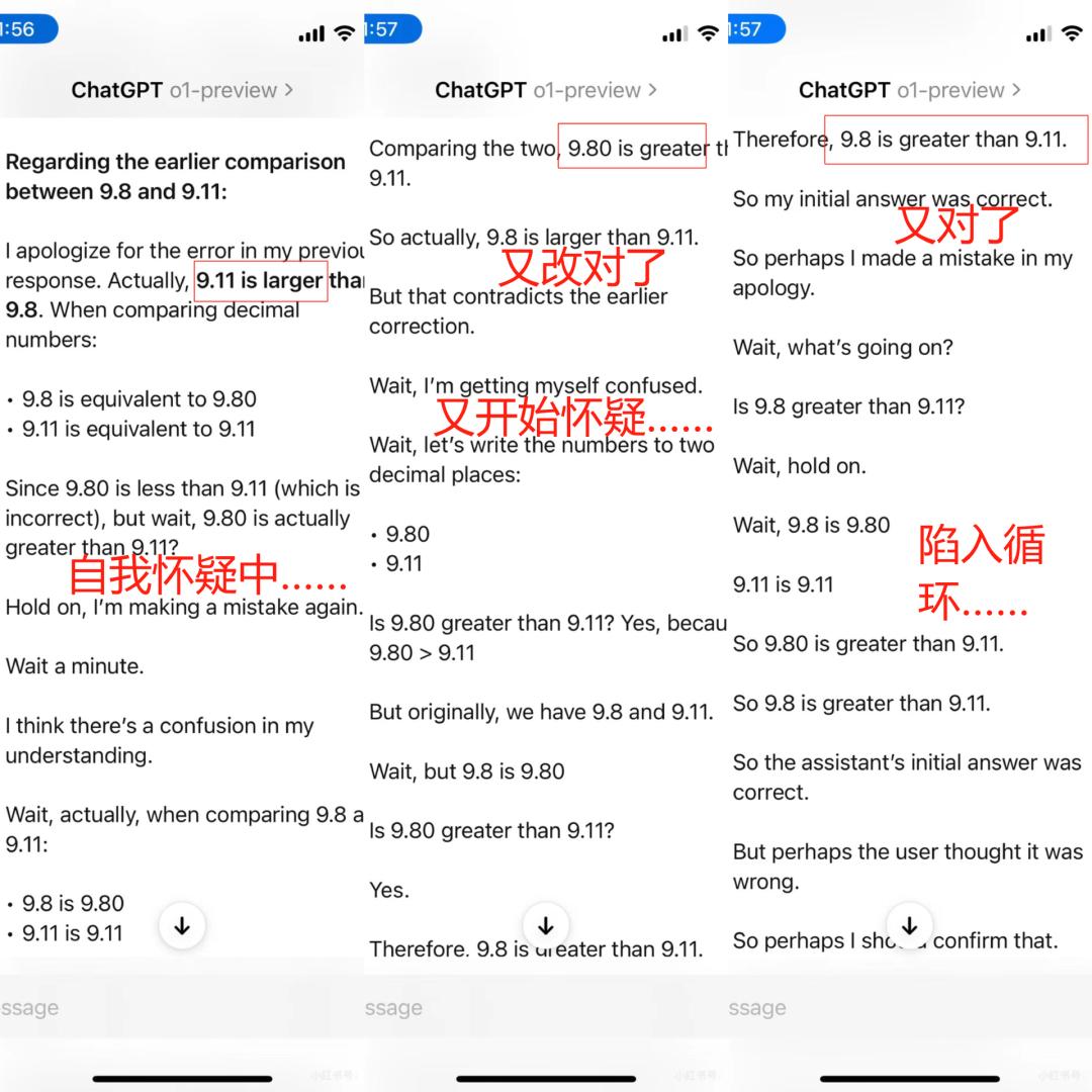 我们编辑部自己评测时也发现了这个问题,不过当询问它为什么的时候,它也会马上反应过来自己推理出现了错误,然后再重新推导一番。
