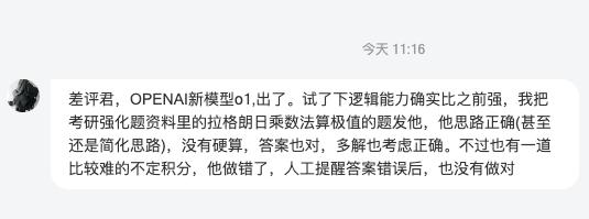 甚至有不少差友跑到咱们后台,感慨 o1 你小子确实有点东西啊。