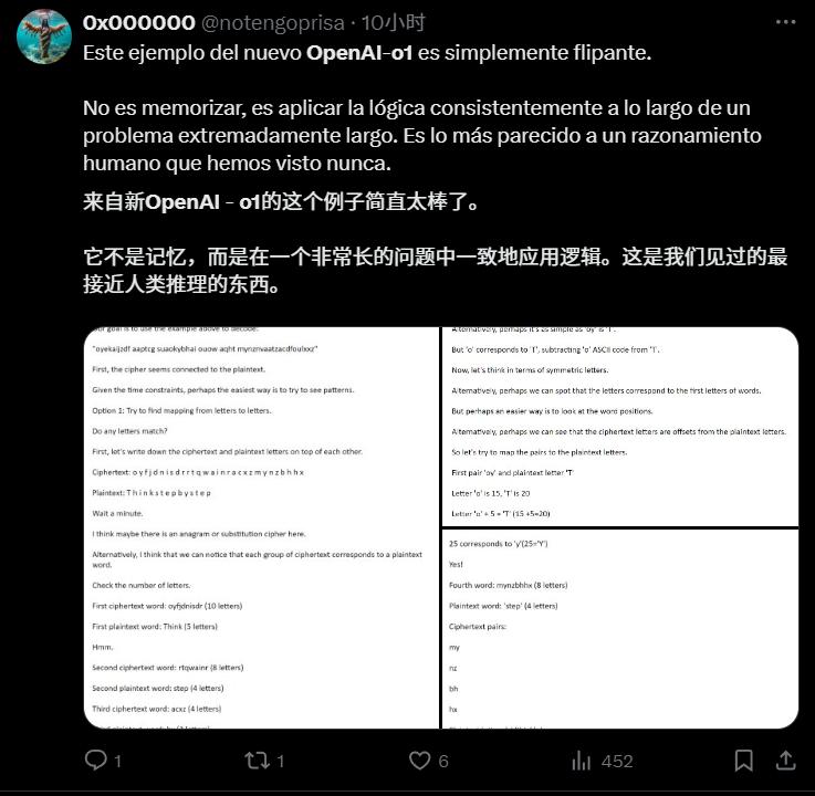 在博士们的评价里,我们似乎能抓到一个重点:o1 模型之所以相对更强,是因为他有了更高维的认知和思考模式。