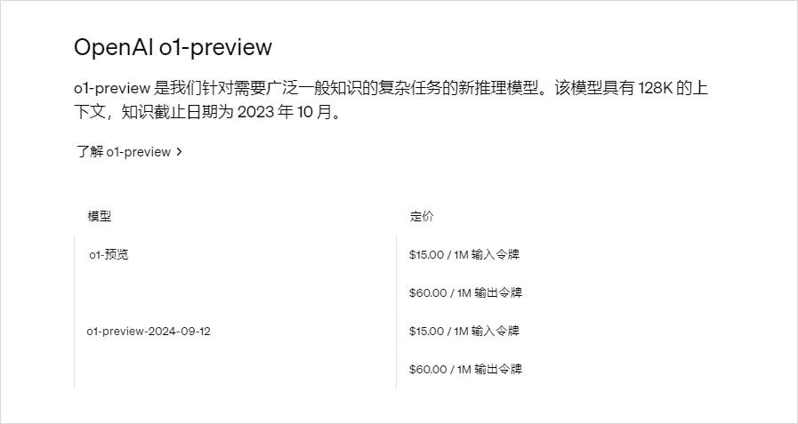 o1 预览版每百万输入 15 美元,每百万输出 60 美元
