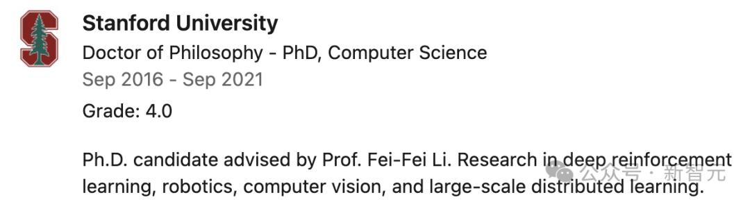 2016~2021年Jim Fan在斯坦福大学读博期间,就是在李飞飞的指导下开展深度强化学习、机器人学、CV等领域的研究。