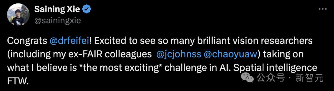 作为Justin Johnson和Chao-Yuan Wu之前在Meta FAIR的前同事,纽约大学助理教授谢赛宁也发推祝贺,并表示「空间智能必胜!」