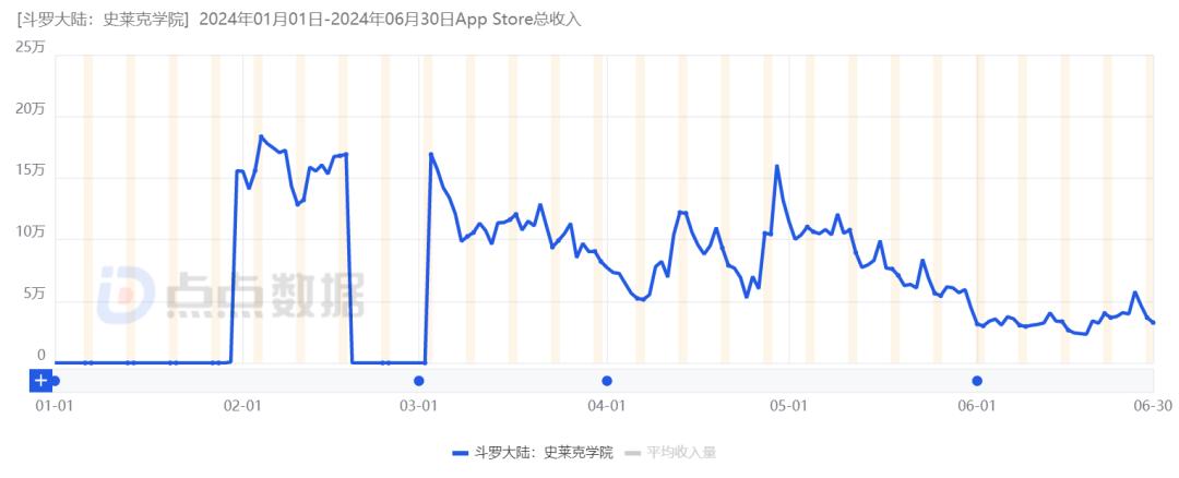 点点数据显示,自1月30日上线以来,《斗罗大陆:史莱克学院》App Store收入稳步走低;截至6月30日,《斗罗大陆:史莱克学院》App Store收入累计为1245.64万美元,约合人民币8856.48万元。