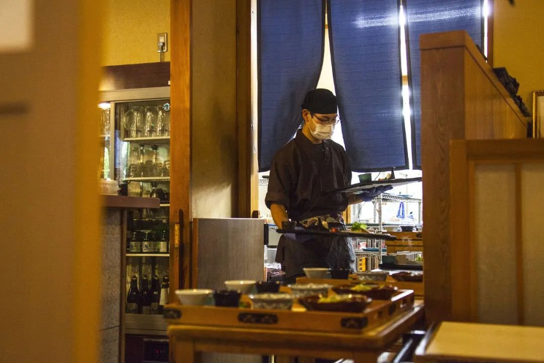 ● 日本一家怀石料理店,店员正在上餐。图源:网络