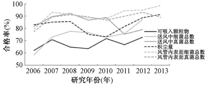 不同研究年份公共场所集中空调通风系统卫生指标合格率丨参考资料[10]
