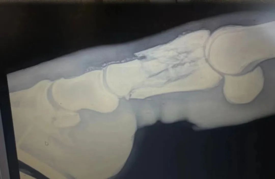 所以在国外,马匹骨折后,有条件的主人会马上找一位优秀的马兽医为其进行手术。但手术也并非一劳永逸。2006年,一位赛马比赛的冠军马因为比赛时起步失误,右腿发生了20多处骨折。在被安排了一场大型手术后,它的身体内插入了27个销钉和一块不锈钢板,情况也有所好转。但在术后的一个月,这匹马的其他三只脚先后出现了蹄叶炎的症状。最终,主人还是不得不将它安乐死。