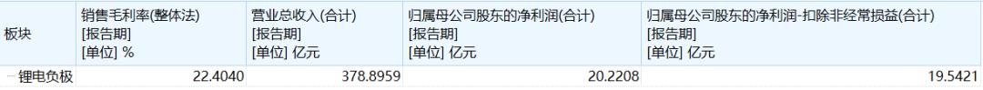 根据Wind统计的数据显示,截至目前,A股市场内主要的负极材料上市公司共有9家。在2024年上半年,负极材料公司整体实现了378.90亿元的营业收入,而归母净利润却仅为20.22亿元,扣非净利润总计为19.54亿元,毛利率整体达22.40%。