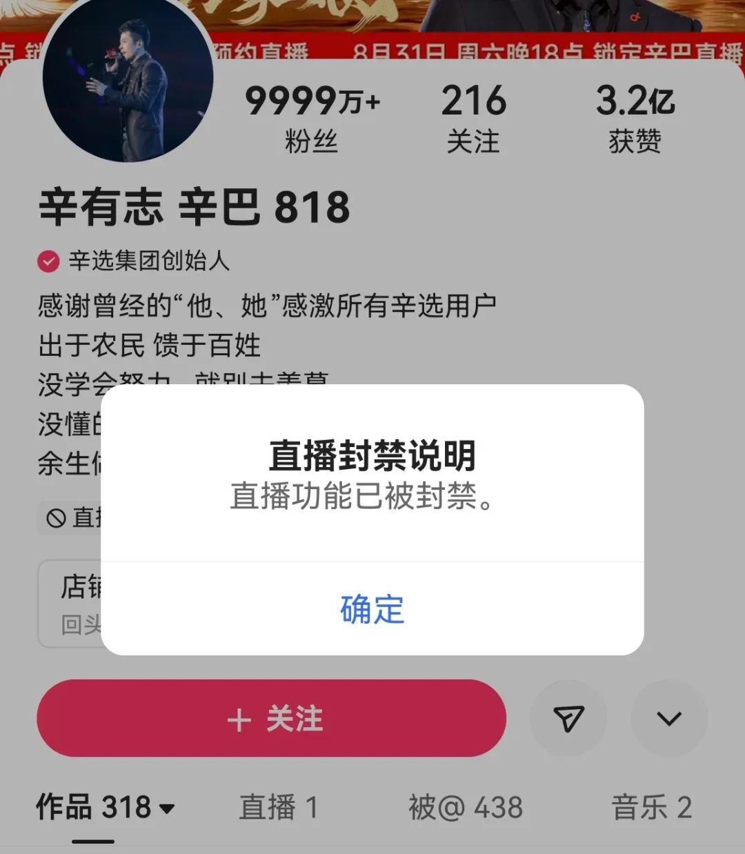 一时间,直播间外观众云集,纷纷期待这场“撒钱大戏”。但没想到辛巴的快手个人账号,在直播前夕突然遭遇封禁。辛选集团方面则表示,对于账号被封禁的原因及恢复时间均不知情。