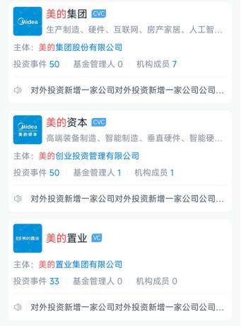 与此同时,天眼查数据显示,与“美的”相关的机构分别有主体为美的集团股份有限公司的“美的集团”,主体为美的创业投资管理有限公司的“美的资本”,和主体为美的置业有限公司的“美的置业”。