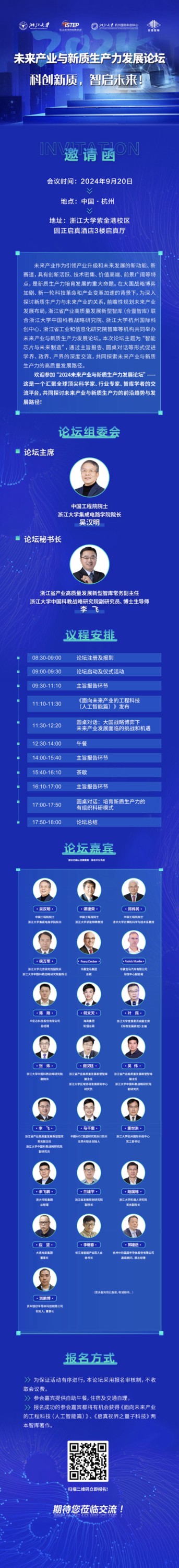 处在产业升级的窗口期,为深入探讨新质生产力与未来产业的关系,前瞻性规划未来产业发展布局,2024未来产业与新质生产力发展论坛即将在杭州召开。