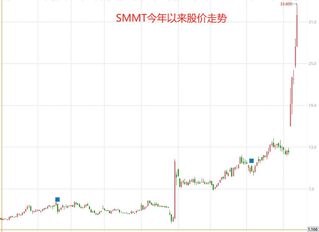 买下依沃西海外核心市场权益的SMMT股价持续暴涨,也从另一个维度对这款中国创新药给出了“掌声”。