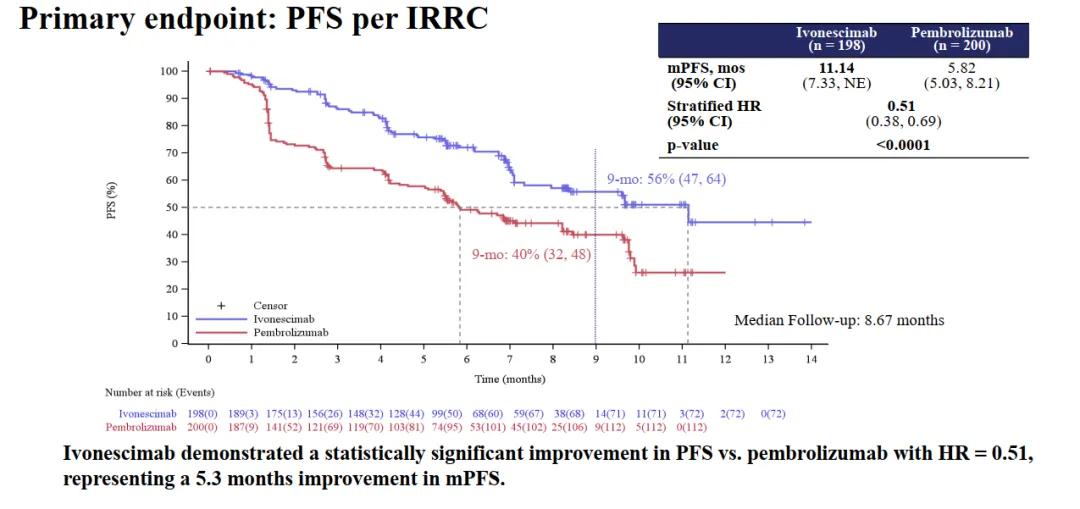 “头对头”研究数据显示,依沃西的mPFS (中位无进展生存期) 为 11.14个月,比K药的 5.82个月接近翻倍。依沃西这一单药治疗的mPFS数值,就超越了众多Pd-1联合化疗的mPFS,因而被认为“远超预期”。
