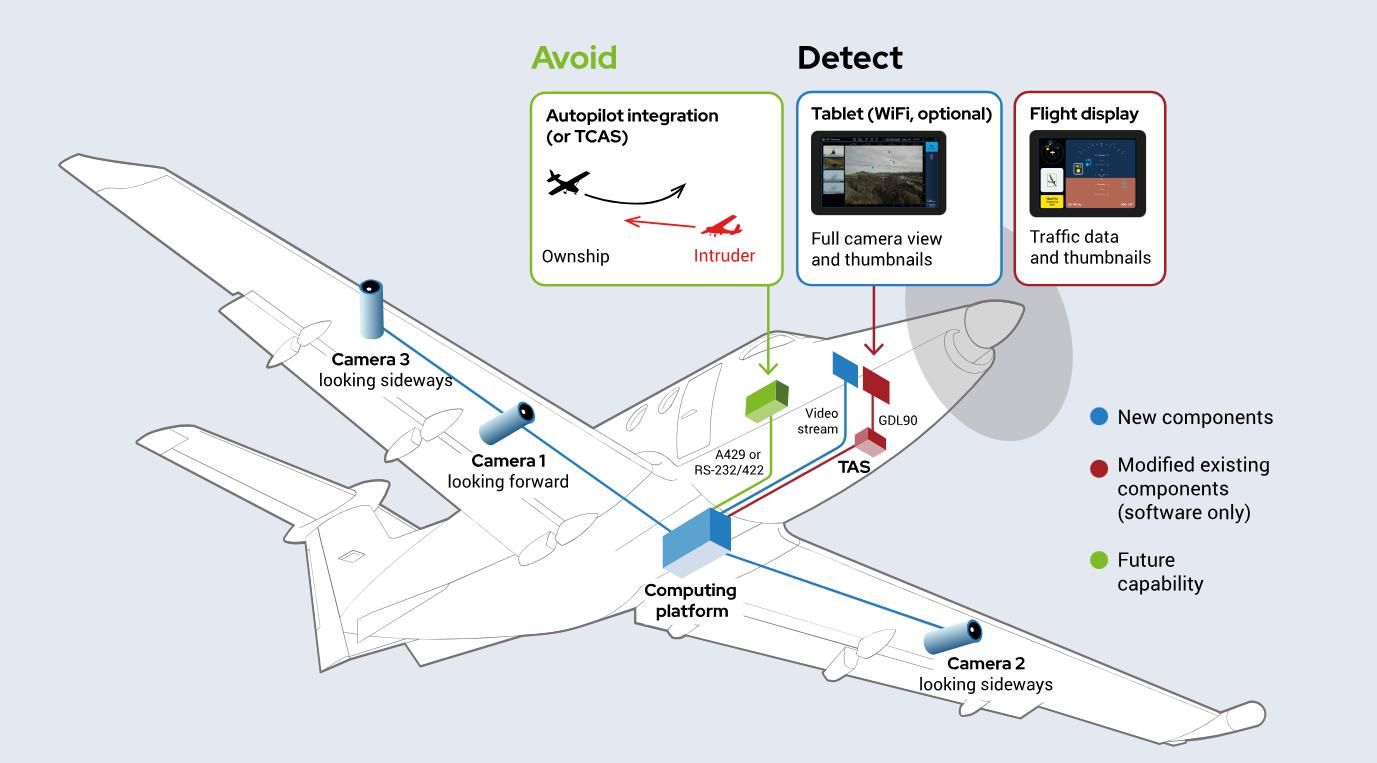 Daedalean的软件与设备具备空中交通检测、定位导航与着陆引导功能,可提升飞机飞行全过程的自主化水平。在高空飞行阶段,Daedalean可持续检测飞行空域动态,及时发现所有固定翼、旋翼机和无人机等飞行器以及鸟类、滑翔机、气球等潜在空中威胁并迅速做出评估,提醒飞行员采取应对措施。同时,Daedalean配备的专有机载视觉定位源,独立于全球导航卫星系统(GNSS),无需任何基础设施,根据地标即可进行定位,并能持续输出位置、航向、速度、离地高度等信息,为飞机提供不间断、可靠和冗余的定位导航功能。在飞机进入着陆的阶段, Daedalean通过提供独立的、基于视觉的飞机位置和地图源,不仅能够识别跑道与直升机停机坪,还能在野外持续选定视野范围内适合紧急、预防性和正常着陆的最佳可用着陆点,在确认预选区域安全的前提下引导飞机安全降落,从而实现任何情况下飞机的自主精确着陆或垂直起降。
