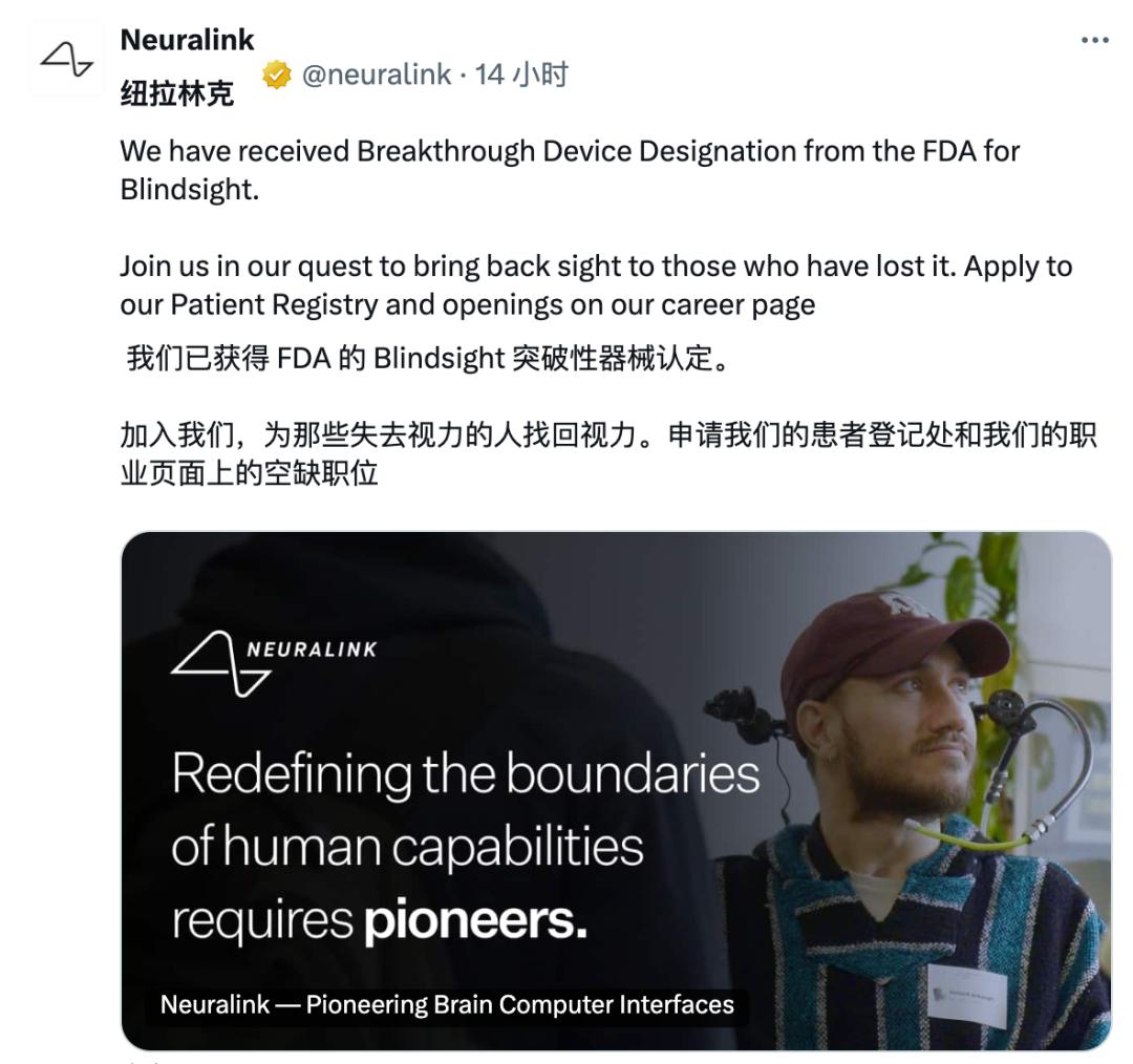 马斯克官宣,脑机接口新一代产品迎重大进展,让盲人重新「看见」?