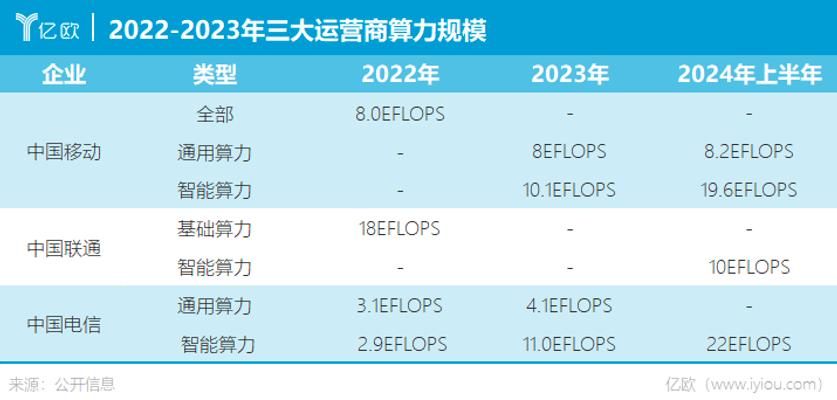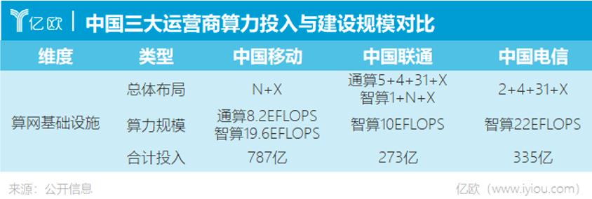 2022年以来,三大运营商对算力的资本投入力度明显加大。结合各自财报数据、各自负责人的公开表态以及权威媒体公开报道,亿欧汇总了近两年三大运营商的算力投入情况。