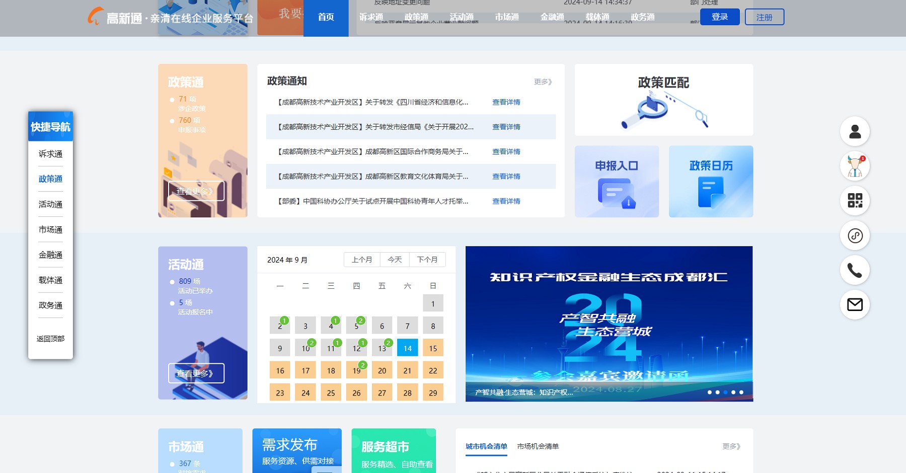 2020年,盈创动力通过承接成都高新区“高新通·亲清在线企业服务平台”的开发运营工作,拓展了包括政策申报、政务诉求处理、载体对接等服务内容,形成了企业“N个综合服务”体系。