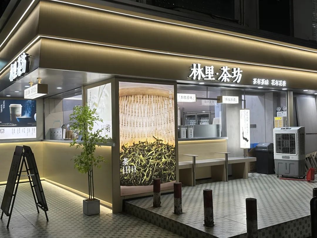 红餐网实地走访发现,这家林里•茶坊位于广州知名的奶茶一条街——天河南一路,这里还聚集了蜜雪冰城、茶理宜世等茶饮品牌的门店。