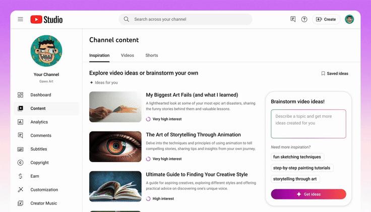 YouTube 首席产品官称,YouTube Studio 的灵感标签页将有所升级,加入一个由生成式 AI 驱动的「头脑风暴助手」,给创作者提供建议,包括视频创意、标题、缩略图和大纲,并匹配创作者的相应风格。