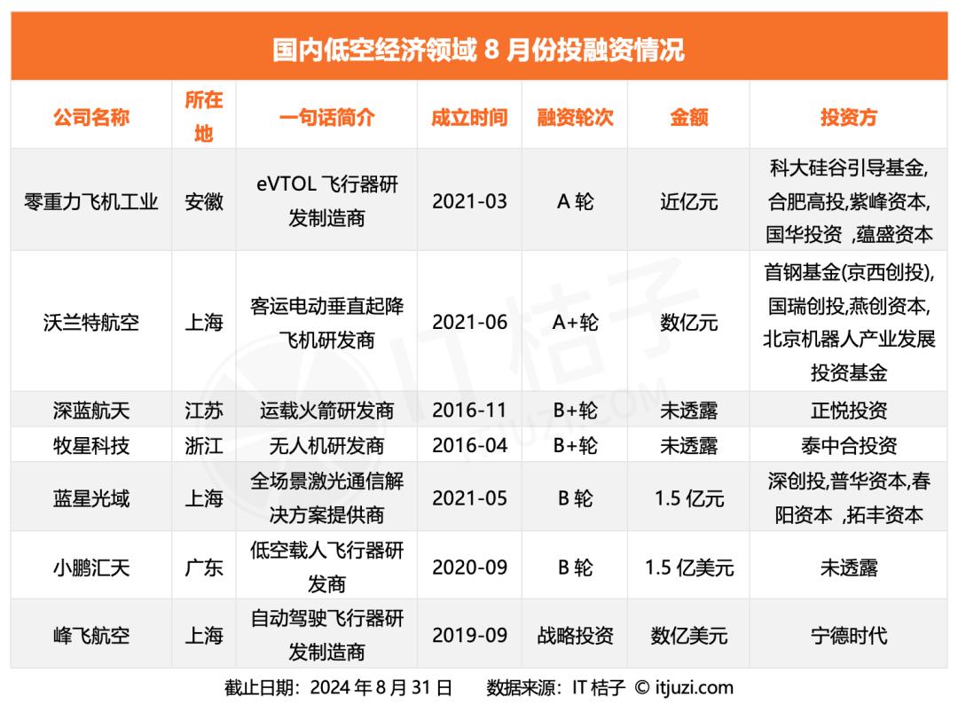 8月低空经济融资关键词:合肥高投、宁德时代、北京机器人产业基金均有出资