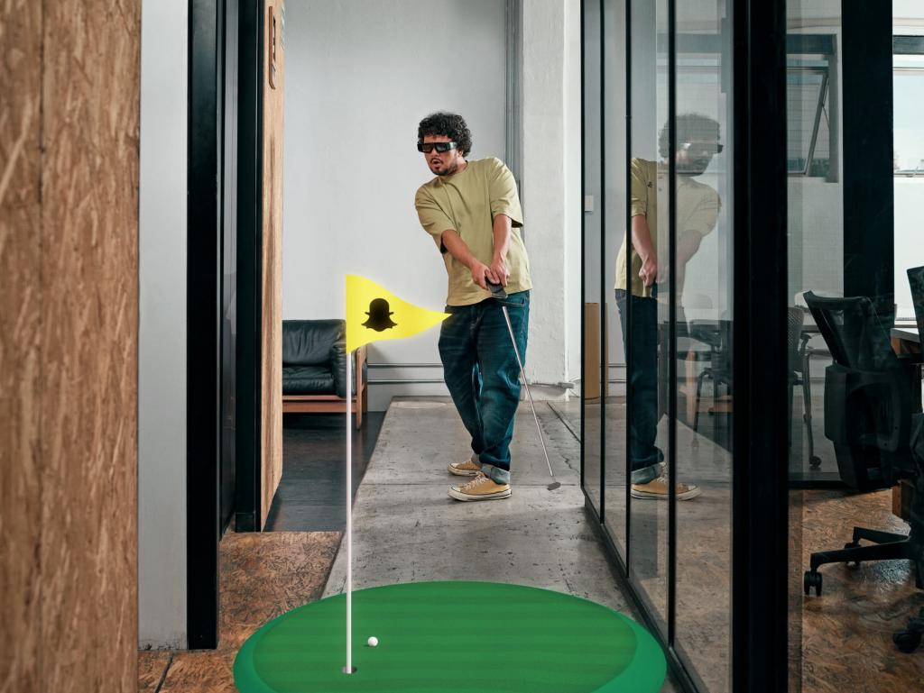 The Verge 尝试用 Spectacles 玩模拟高尔夫游戏,出来的效果很难称得上「未来感」。