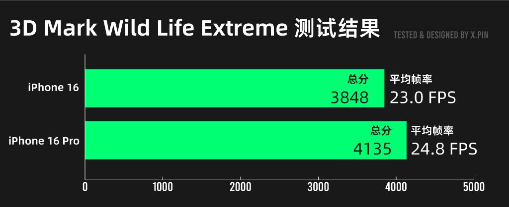 就拿 3D Mark Wild Life Extreme 的测试结果来说,它们的平均帧率只差了 1 点几帧,分数也才差个三百来分。