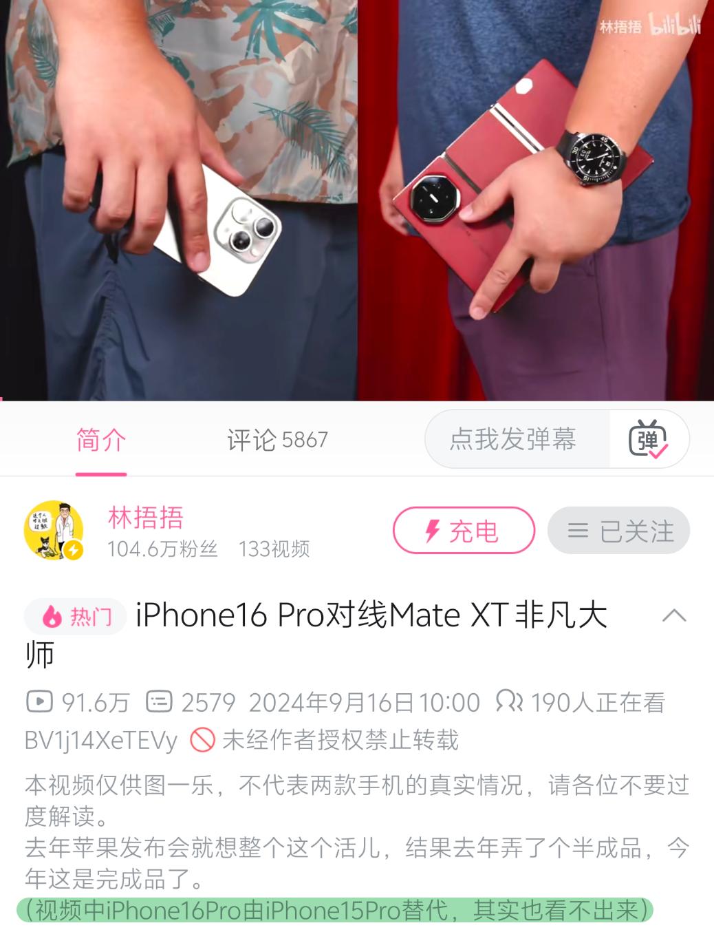 与之形成鲜明对比的是,这代 iPhone 16 Pro 真的很难让人看出差别——如果你有看林捂捂最新一期视频的话,那么你就会知道,他拿 iPhone 15 Pro 替代 16 Pro 整活,观众们也没发现。