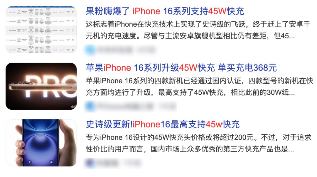 关于 iPhone 16 Pro ,之前我看到网上老在传:iPhone 16 Pro 有快充了,45W !