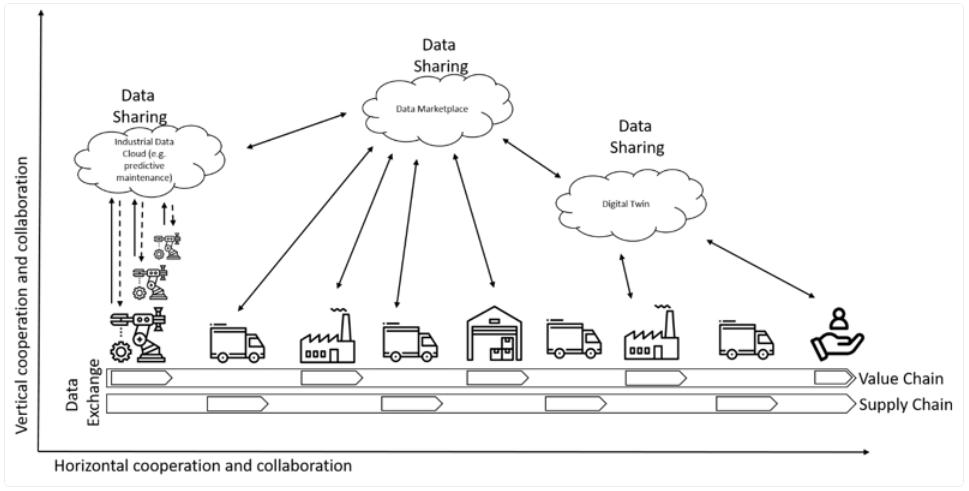 数据共享发生在公司之间的垂直和水平合作中,以实现共同目标(例如制造业中的预测性维护场景)或通过从数据中产生额外价值来实现新的商业模式(例如在数据市场中)。此外,数据共享意味着一种合作模式,以实现合作竞争。