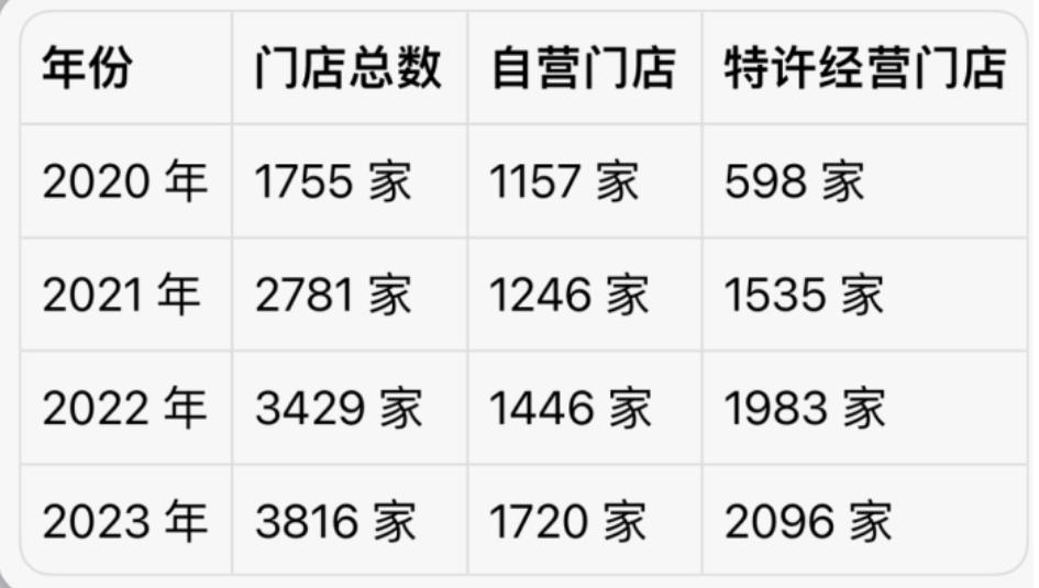 门店也在保持增长,2020~2023年三年间,门店由5695家增至6205家,今年上半年增至6308家。