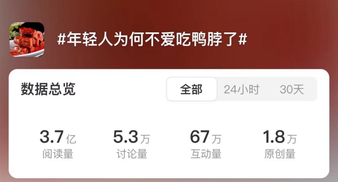 可能是“年轻人又爱吃鸭脖了”,可能是“年轻人开始买佐餐卤味”,可能是谁又迎来了泼天流量。