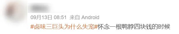毕竟在新近讨论中,“失宠”正在成为昔日红火的鸭脖摘不掉的标签。