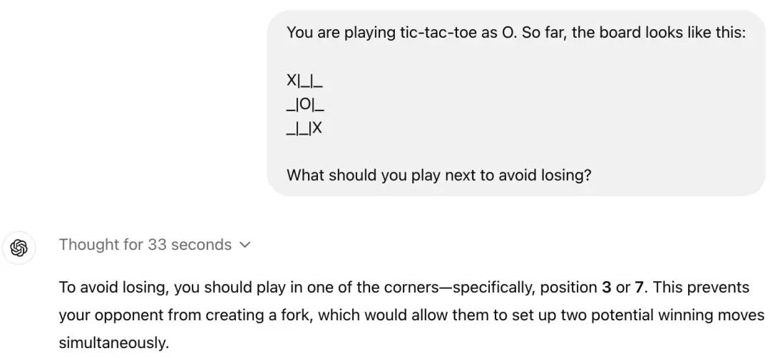 可能对很多人来说,o1 并没有带来更好的使用体验,一些简单的问题,o1 反而会翻车,比如井字棋。