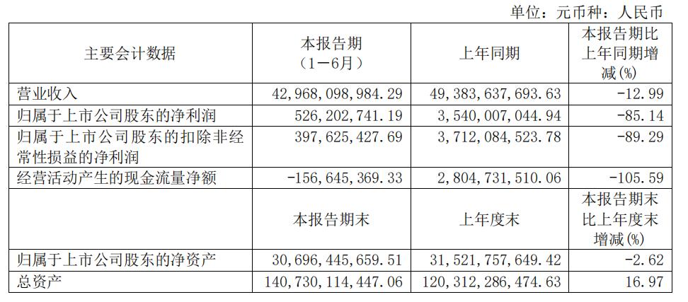 数据显示,2024年上半年,天合光能实现营业收入429.68亿元,同比下降12.99%,实现归母净利润5.26亿元,同比下降85.14%。