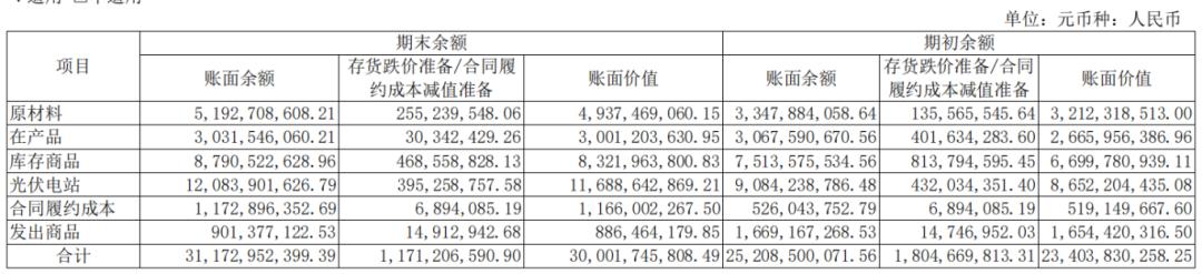 其中光伏电站、库存商品、原材料是公司存货主要构成。截至2024年6月30日,该三类账面余额分别为120.84亿元、87.91亿元51.93亿元。