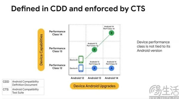 如果对于Android系统本身的历次版本更新不甚关注,恐怕会对谷歌这一操作一头雾水。我们先来进行一下名词解释,其中“性能等级”是谷歌在Android 12上引入的认证标准功能。其将Android设备分为不同的性能等级,App开发者就可以根据不同设备的性能等级来进行优化,比如在性能等级低的设备上,开发者就可以选择减少一些非必要的动画,从而让设备能够流畅运行。