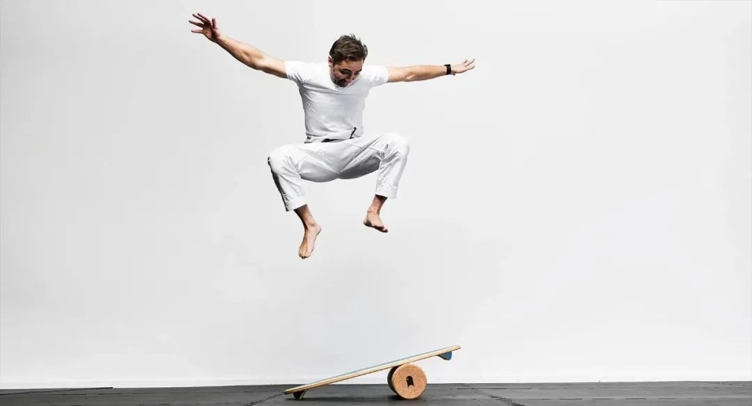 静态方面,健身人会通过高难度体式或不稳定面平衡,展示自己强大的平衡能力和核心力量,比如瑜伽的侧乌鸦式,或单手侧乌鸦式。不稳定方面,波速球单腿站立只算初级入门,进阶挑战会加入力量和爆发力挑战,比如波速球或平衡板站立抛接球,平衡板转身180度等,