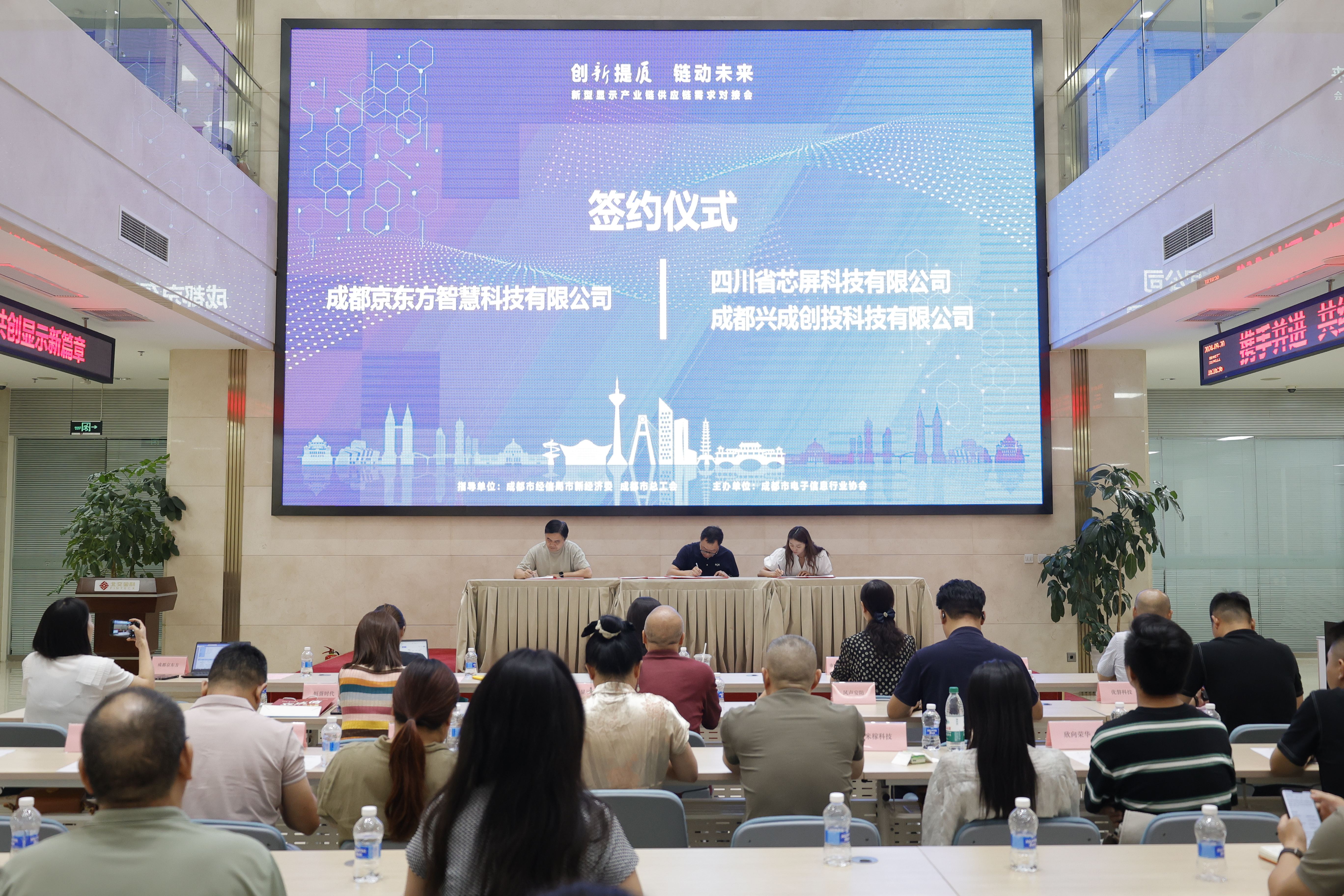 9月20日下午,在成都市经信局市新经济委和成都市总工会的指导下,由成都市电子信息行业协会主办的“创‘新’提‘质’,链动未来,新型显示产业链供应链需求对接会”在高新区举办。本次活动聚焦京东方最新产品,汇聚五十余家新型显示产业链和供应链上下游企业,共同探讨新型显示产业链的发展现状及未来趋势,加强产业链上下游协同联动,现场签约订单金额超过两千万,助力链上企业创“新”提“质”高质量发展。