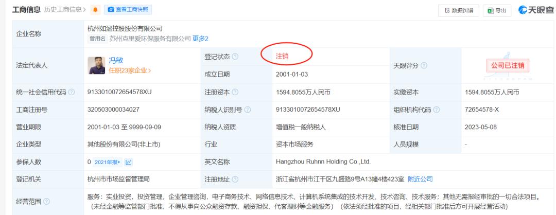 如涵控股在2019年4月上市当天经历了破发,因持续净利润为负,2021年4月,它完成了私有化退市,黯然收场。2023年,上市主体杭州如涵控股股份有限公司经营状态由存续变更为注销。