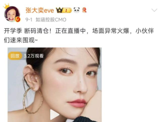 张大奕或许早就做好了退场的准备。她的微博大号“张大奕eve”从九月初至今,已经发布了9次清仓直播的链接。