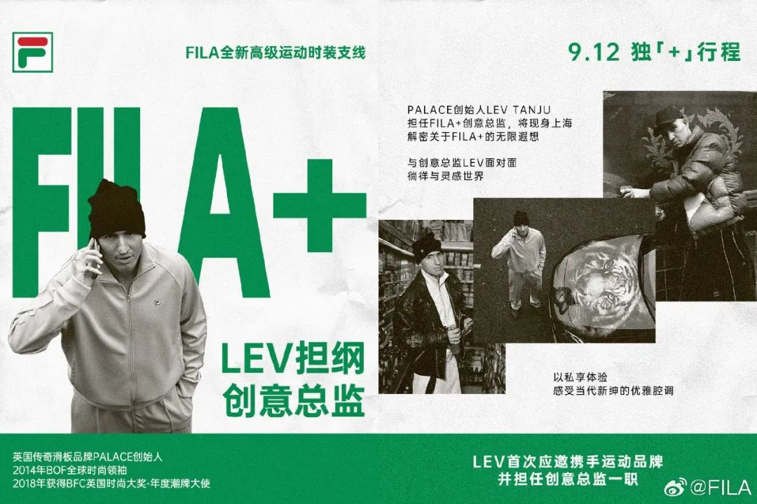9月11日,时尚运动品牌FILA宣布推出全新高级运动时装支线FILA+。FILA+表示,将邀请英国滑板品牌PALACE创始人Lev Tanju担任创意总监,以开创性的设计语言,为优雅百年的FILA注入从容活力。同时,FILA+首发系列将于9月24日登陆国内部分门店。