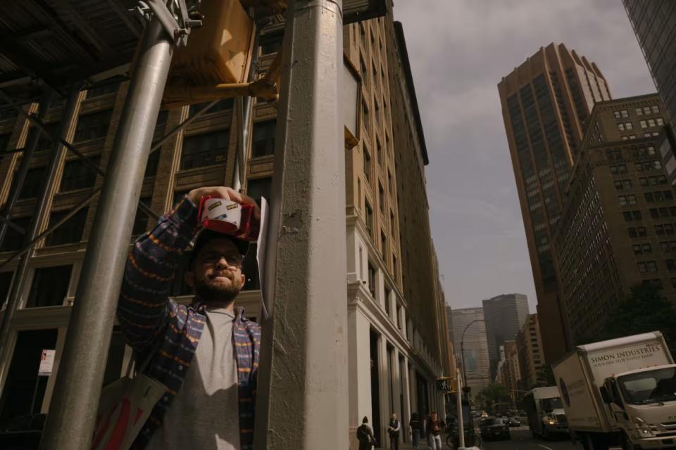图注:库格曼在曼哈顿张贴传单,宣传他在领英上的个人资料