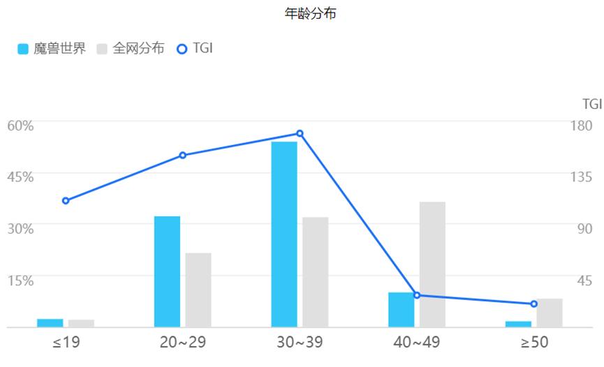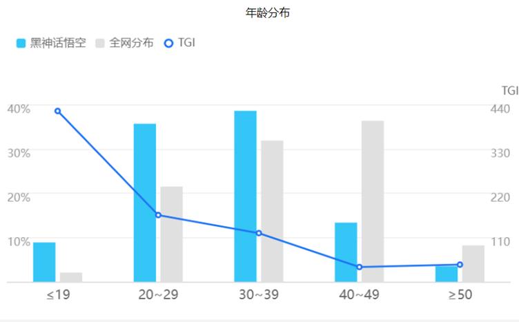 根据百度指数显示,对“黑神话悟空”感兴趣的用户中,20-39岁用户占比超过70%,而对“魔兽世界”感兴趣的用户中,20-39岁用户占比超过85%。