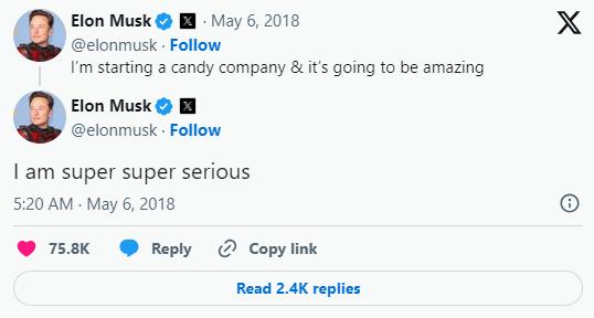 特斯拉进军糖果业并不是一个新计划,最早起因于2018年巴菲特对特斯拉的评论,引发马斯克在Twitter上宣布要创办一家糖果公司。