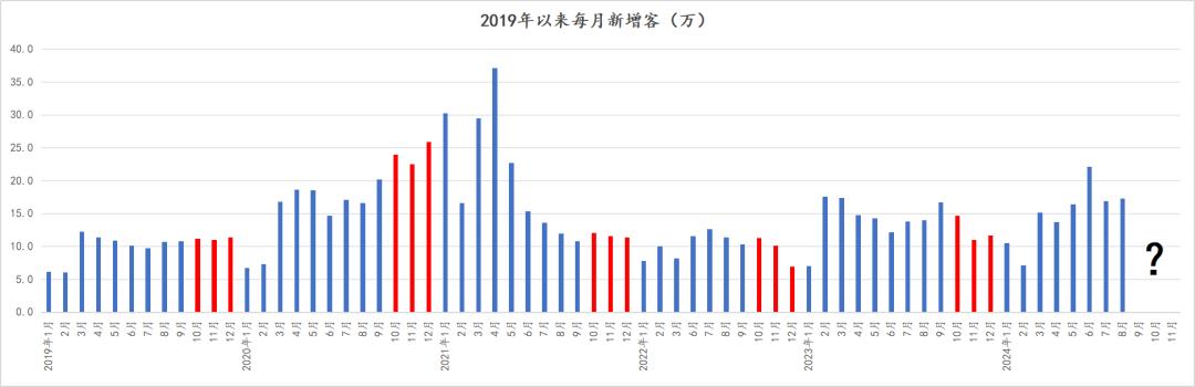 在这个客户=机会的市场里,多出来的客户就意味成交概率,所以说有点金九的意思 ,不过后面的趋势并不是这样,新增客户这件事也是有自己波动规律的 ,简言之就是越到年底买房人越少。