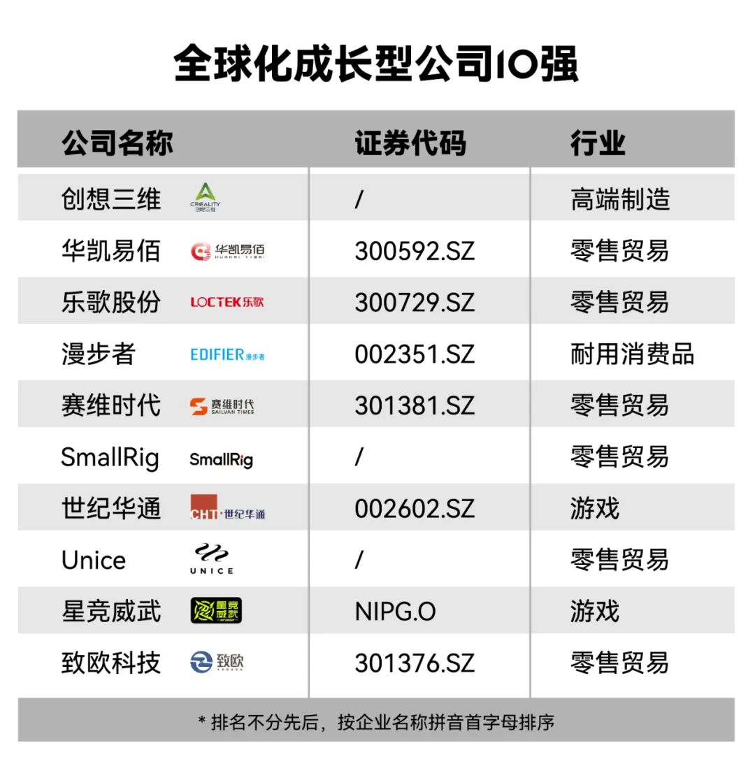 巨头之外,中国成长型出海公司今年也取得了不错的成绩。