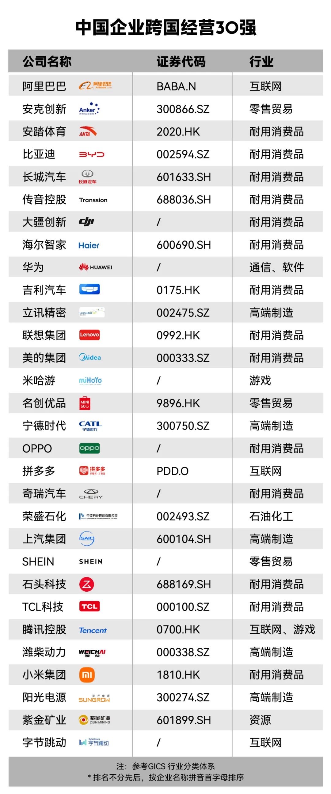 今年,本榜单的上榜企业数量由去年的50家缩减至30家,连续上榜企业仅13家,但这并不意味着中国企业出海势头的回落。