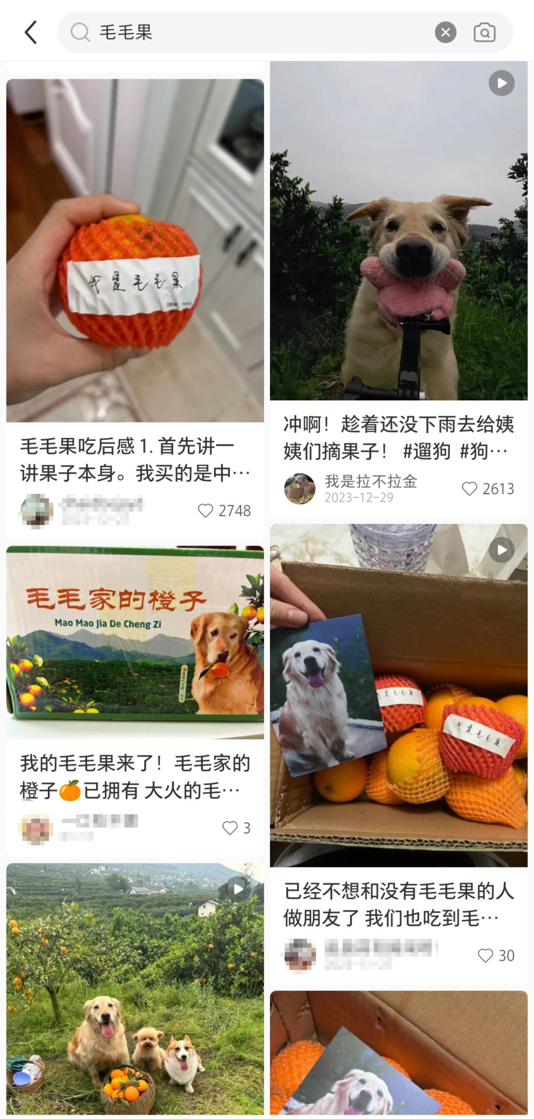 主人就把毛毛摘的橙子叫做“毛毛果”,如果有人下单备注想要毛毛摘的橙子,主人都会做好特别标记:“毛毛采摘,谨慎入口”。还有很多网友会把毛毛果给自己家养的小狗吃