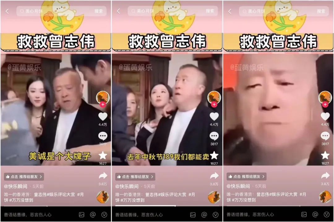 有人反复品味小杨哥兄弟在直播间向香港演员曾志伟推销月饼时的片段,尤其是当小杨哥说到“美诚是很大的牌子,在店里要排队才能买到”时,不少网友被曾志伟的表情逗笑,称“第一次在曾志伟脸上看到清澈又愚蠢的眼神”,调侃他是直播间里的“唯一港货”。